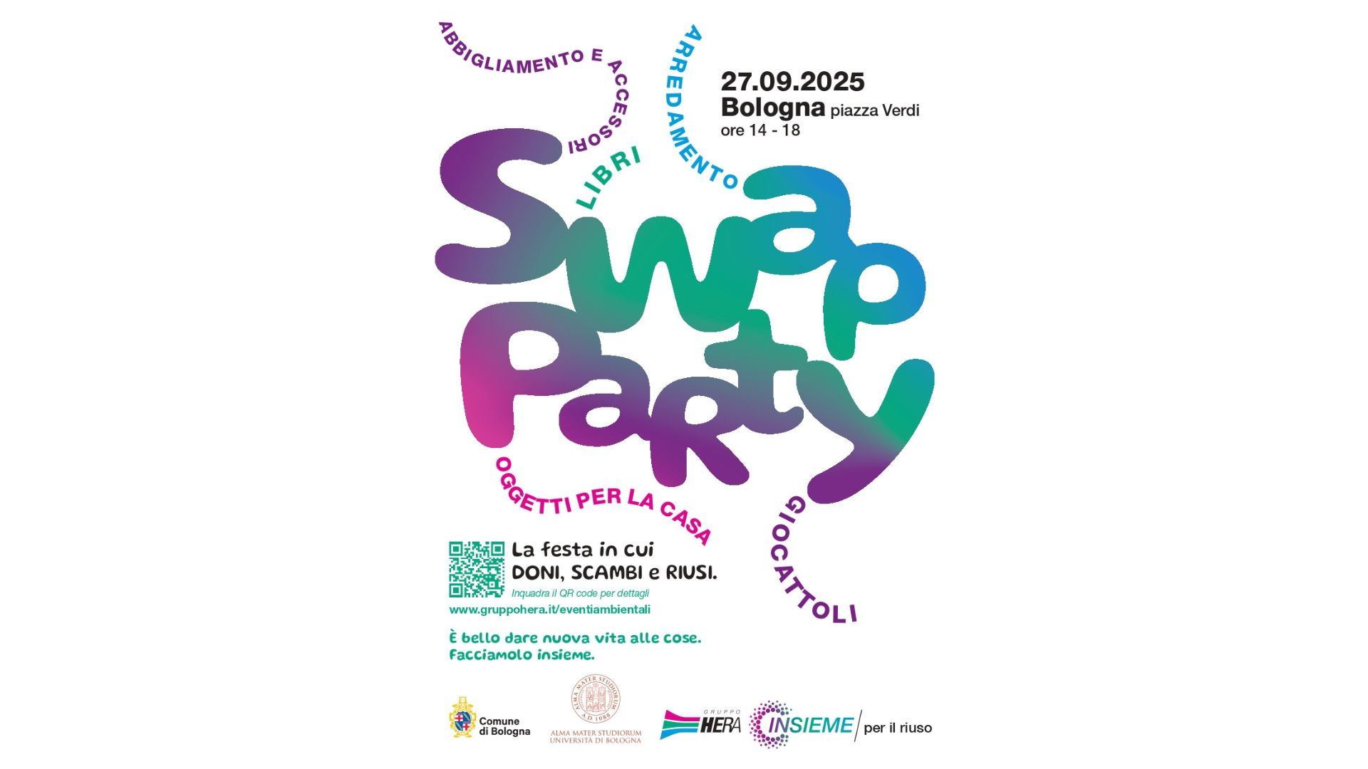 Sabato 25 ottobre dalle 15.30 arriva il RIUSO & SWAP PARTY in Piazza Lucio Dalla e alla Casa di Quartiere Katia Bertasi (Bologna), evento dedicato alla promozione del riuso e della riparazione organizzato da Hera. Durante il pomeriggio sarà possibile partecipare allo Swap Party, un vero e proprio......