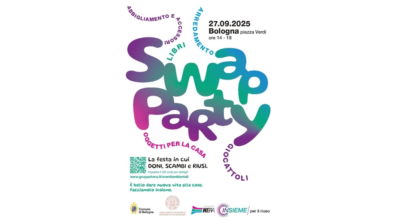 Una festa per donare, scambiare, dare nuova vita alle cose: sabato 27 settembre, dalle 14 alle 18, in piazza Verdi a Bologna si tiene il primo swap party della campagna “Insieme”, promossa dal Comune di Bologna e dal Gruppo Hera per stimolare comportamenti virtuosi in tema di raccolta differenziata, pulizia urbana e riuso dei materiali. Organizzata nel cuore della zona universitaria, la festa ha come partner l’Ateneo di Bologna, coinvolto sin dalla nascita della campagna “Insieme” proprio per raggiungere la numerosa popolazione studentesca che vive profondamente la città. L’intento è quello di informare e sensibilizzare studentesse e studenti sulle buone pratiche nella gestione dei rifiuti e su come mettere in atto comportamenti virtuosi anche a beneficio della pulizia degli spazi comuni.